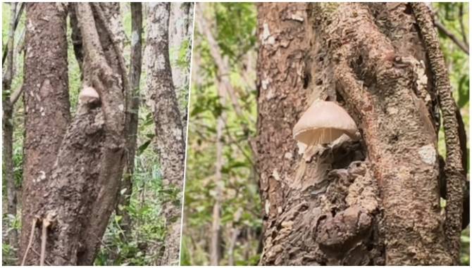 ฮือฮา! พบเห็ดประหลาดงอกออกกลางลำต้นไม้ใหญ่กลางป่า