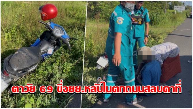 หวิดสิ้นชื่อ! ตาวัย 69 พาภรรยาวัย 73 ซ้อนท้ายขี่จยย.หลับในตกถนนสลบคาที่ พลเมืองดีจอดรถช่วย