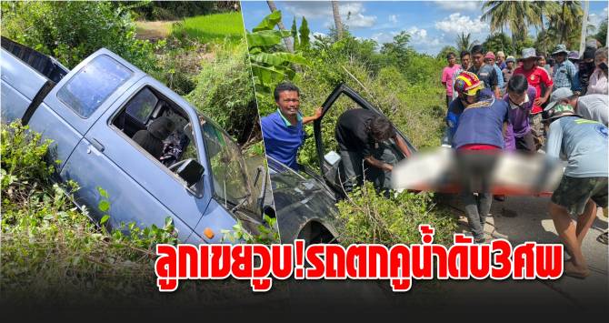 ลูกเขยโรคกำเริบขณะขับรถพาแม่ยาย-หลานกลับจากทอดกฐิน เสียหลักตกคูน้ำดับ 3 ศพ
