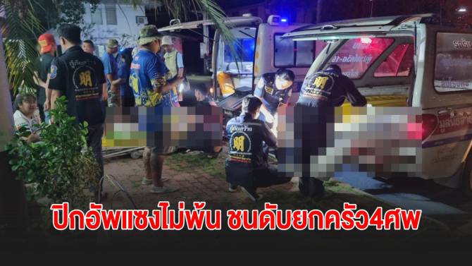 ปิกอัพซิ่งแซงไม่พ้น! ชนจักรยานยนต์ดับยกครัว 4 ศพ สลดเด็ก 3 ขวบรวมด้วย