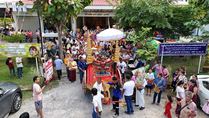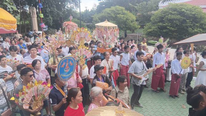 สุพรรณบุรี แห่กฐินดาบหลวงพ่อขุนด่านหนึ่งเดียวในโลกลุ้นโชคถูกรางวัลลอตเตอรี่