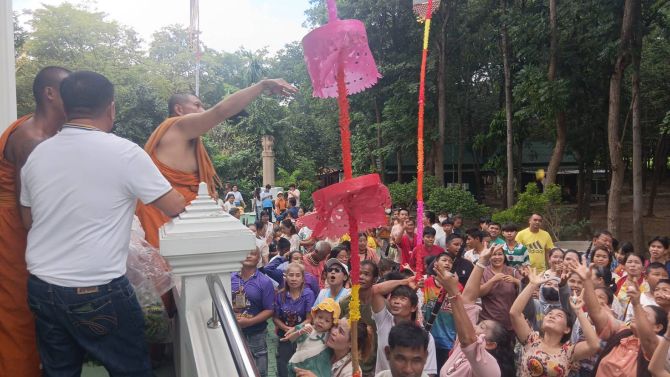 คึกคักขบวนแห่กฐินดาบ ถวายหลวงพ่อขุนด่าน หนึ่งเดียวในโลก ขบวนแห่ลอดซุ้มดาบยักษ์ หลวงพ่อขุนด่าน 8 ด่านอรหันต์ เพื่อตัดทุกข์ ตัดโศก ตัดโรค ตัดภัย ตัดเคราะห์กรรม และเพื่อความเป็นสิริมงคล มีโชคลาภ ยังได้ลุ้นโชคถูกรางวัลลอตเตอรี่ ติดอยู่ที่ดาบทุกเล่ม และเจ้าอาวาสได้เสกเงินก่อนโปรยทาน มีทั้งแบงก์ 1,000 แบงก์ 500 แบงก์ 100 แบงก์ 20 และเหรียญ จำนวนมาก
