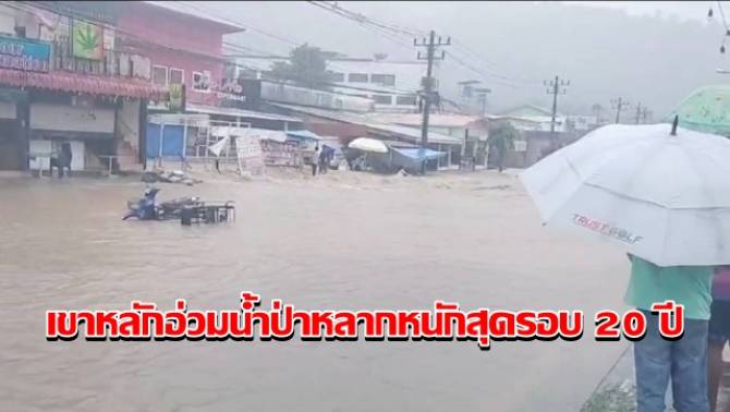 เขาหลักอ่วม! น้ำป่าไหลหลาก เข้าท่วมบ้านเรือนประชาชน ชุมชนแหล่งท่องเที่ยว หนักสุดรอบ 20 ปี