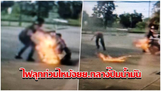 เมื่อเติมน้ำมันใกล้เต็มถังพบเด็กปั๊มได้ก้มไปมองที่ถังน้ำมันและบอกให้เจ้าของรู้ว่ามีน้ำมันไหลออกมาต่อเนื่องเป็นทางยาวไม่หยุด ส่วนผู้หญิงอายุราว 40 ปีผู้ขับขี่ได้สตาร์ทรถจยย.โดยมีลูกสาวอายุประมาณ 11 ปีนั่งซ้อนท้าย ได้เกิดประกายไฟลุกพรึ่บไหม้ลุกลามรถจยย.ขึ้นมาทันทีอย่างรวดเร็วและไฟไหม้ลุกลามขาฝั่งซ้ายหญิงสาวคนขับขี่จนต้องทิ้งรถจยย.ล้มลง ส่วนลูกสาวบาดเจ็บเล็กน้อย