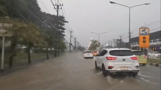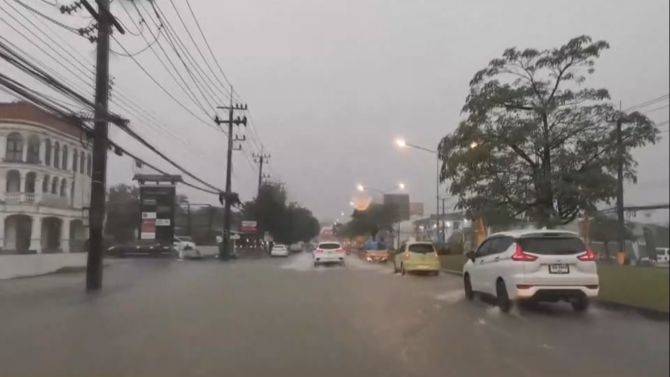 เมื่อเวลา 15.50 น. วันที่ 23 ตุลาคม 2568 จังหวัดภูเก็ตมีฝนตกต่อเนื่องในหลายพื้นที่ ส่งผลให้เกิดน้ำท่วมขังรอการระบายบนถนนสายหลักหลายจุด โดยเฉพาะถนนเทพกษัตรี ฝั่งขาเข้าเมืองภูเก็ต บริเวณหน้าโรงเรียนมุสลิม อำเภอเมืองภูเก็ต และช่วงก่อนถึงห้างบิ๊กซี เทพกษัตรี พบมีน้ำท่วมขังในช่องทางการจราจร ทำให้สามารถสัญจรได้เพียงช่องทางเดียว เจ้าหน้าที่ขอให้ประชาชนผู้ใช้รถใช้ถนนเพิ่มความระมัดระวัง เนื่องจากบางจุดยังมีน้ำท่วมและพื้นถนนลื่น อาจเกิดอุบัติเหตุได้