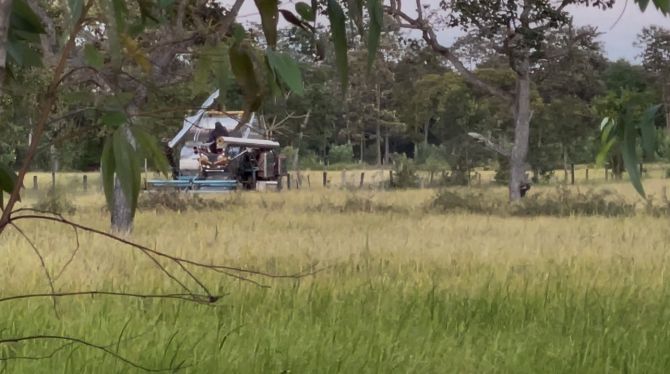 ผู้สื่อข่าวลงพื้นที่บ้านกระเทียม ตำบลกระเทียม อำเภอสังขะ จังหวัดสุรินทร์ ซึ่งอยู่ห่างจากชายแดนประมาณ 15 กิโลเมตร พบว่าชาวนาในพื้นที่ต่างเร่งเก็บเกี่ยวผลผลิตกันอย่างต่อเนื่อง