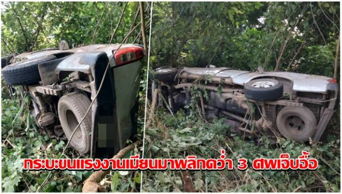 กระบะขนแรงงานเมียนมาลอบเข้าไทยหวังมาทำงาน พลิกคว่ำดับ 3 เจ็บ 35 หนีเข้าป่าอีกนับ 10