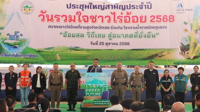 ผู้สื่อข่าวรายงานว่า เมื่อวันที่ 25 ตุลาคม 2568 ที่ลานอ้อย โรงงานน้ำตาลมิตรภูหลวง ถนนมลิวรรณ ตำบลโคกขมิ้น อำเภอวังสะพุง จังหวัดเลย นายประยูร อรัญรุท รองผู้ว่าราชการจังหวัดเลย เป็นประธานเปิดงานประชุมใหญ่สามัญประจำปี “วันรวมใจชาวไร่อ้อย ประจำปี 2568” โดยมีนายไพรัตน์ ช่วยบำรุง ผู้อำนวยการศูนย์ส่งเสริมอุตสาหกรรมอ้อยและน้ำตาลทรายภาคที่ 4 นายยศวัฒน์ พัชระศักดิ์สกุล นายอำเภอวังสะพุง นายสิทธิบูรณ์ รัชตะสุวิโรจน์ นายกสมาคมชาวไร่อ้อยที่ราบสูงจังหวัดเลย พร้อมด้วยหัวหน้าส่วนราชการ หน่วยงานที่เกี่ยวข้อง และชาวไร่อ้อยกว่า 5,000 คน เข้าร่วมงานอย่างคับคั่ง