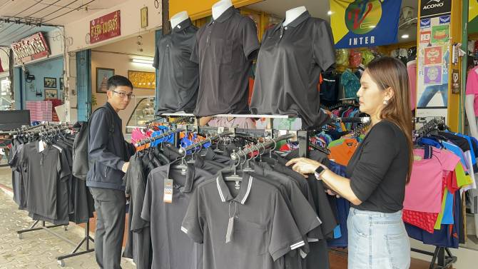 วันนี้ (25 ต.ค. 68) ร้านค้าในตัวเมืองหนองคาย ได้นำเสื้อผ้า ทั้งแขนสั้นและแขนยาว มาวางจำหน่ายให้ประชาชนเลือกซื้อเพื่อนำไปสวมใส่ถวายความอาลัยสมเด็จพระนางเจ้าสิริกิติ์ พระบรมราชินีนาถ พระบรมราชชนนีพันปีหลวง ขณะเดียวกัน หน่วยงานราชการและองค์กรต่าง ๆ ได้ลดธงครึ่งเสา และจัดหาผ้าขาว-ดำ ไปผูกประดับตามอาคารและสถานที่ทำการต่าง ๆ เพื่อถวายความอาลัย