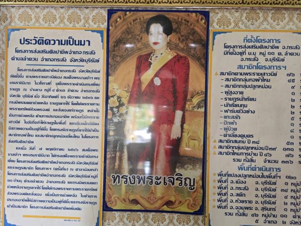 นางพันนี นะเรืองรัมย์ อายุ54 ปี สมาชิกโครงการส่งเสริมศิลปาชีพ อ.กระสัง จ.บุรีรัมย์ เล่าว่า ตอนนั้นพระองค์เสด็จครั้งแรกเมื่อวันที่ 26 ธ.ค.2536 ที่หมู่บ้านยากจนของพวกตนที่ ต.บ้านยาง อ.กระสัง