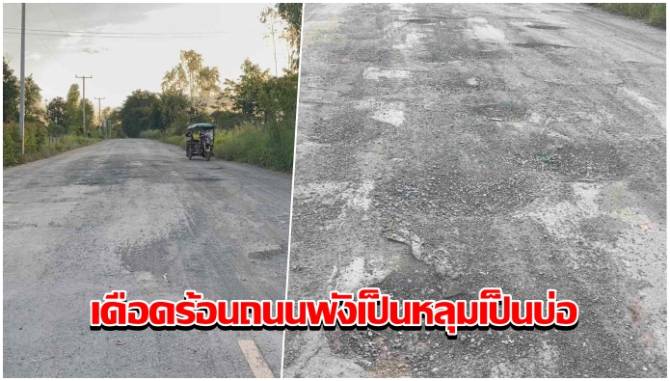 ชาวบ้านร้องทุกข์ถนนพังเป็นหลุมเป็นบ่อ วอนหน่วยงานมาซ่อมแซมให้ด้วย