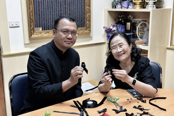 ลพบุรี จัดทำริบบิ้นดำถวายอาลัยพระบรมราชชนนีพันปีหลวง