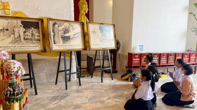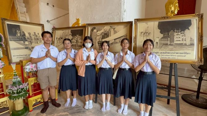 นักเรียนจากโรงเรียนกรรณสูตศึกษาลัย จังหวัดสุพรรณบุรี เข้าร่วมกิจกรรมถวายสักการะ พร้อมตั้งจิตอธิษฐานและน้อมจิตอุทิศถวายเป็นพระราชกุศล แสดงความอาลัยต่อการเสด็จสวรรคตของสมเด็จพระพันปีหลวง