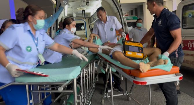 ที่เกิดเหตุบริเวณข้างบ้าน พบผู้บาดเจ็บทราบชื่อคือ นายภาณุพงศ์ อายุ 27 ปี ชาวจังหวัดพัทลุง ถูกยิงเข้าลำตัวและหน้าอกกว่า 7 นัด จนล้มลงห่างจากบ้านประมาณ 30 เมตร เจ้าหน้าที่กู้ชีพเร่งนำส่งโรงพยาบาลพัทลุงในสภาพหมดสติ บริเวณประตูบ้านพบรอยกระสุนหลายจุด และพบปลอกกระสุนปืนขนาด 9 มม. จำนวน 9 ปลอก เจ้าหน้าที่เก็บไว้เป็นหลักฐาน