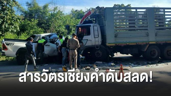 สารวัตรเชียงคำดับสลด! กระบะชนสิบล้อกลางถนนลำปาง–งาว