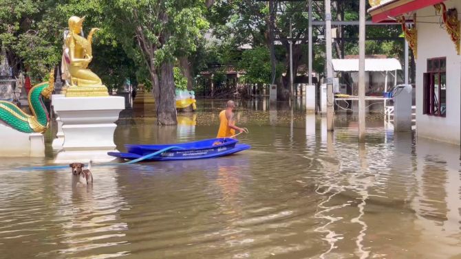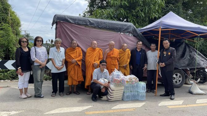 ขณะเดียวกัน พระราชวชิรกิจจาทร เจ้าคณะจังหวัดชัยนาท พร้อมคณะสงฆ์ และนายวัชรินทร์ คุ่ยศิริ ผู้อำนวยการสำนักงานพระพุทธศาสนาจังหวัดชัยนาท ได้ลงพื้นที่เยี่ยมให้กำลังใจและมอบข้าวสารอาหารแห้งแก่ 3 วัดที่ประสบอุทกภัยในตำบลโพนางดำออก อำเภอสรรพยา ได้แก่ วัดมะปราง วัดสมอ และวัดไผ่ล้อม