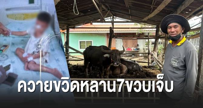 เด็ก 7 ขวบมุดคอกเล่นควาย ถูกขวิดเจ็บหน้า-หัว คาดโมโหหิว
