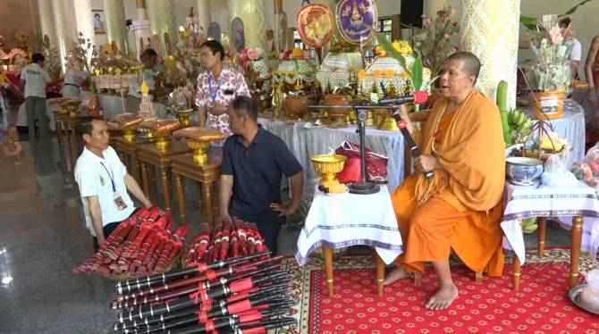 นอกจากนี้ ผู้ที่ไม่มีดาบส่วนตัวสามารถ “เช่าดาบทำบุญ” จากทางวัดได้ โดยแต่ละเล่มจะมี “ลอตเตอรี่ใส่ซองสีแดง” ผูกติดไว้ 1 ใบ ให้ได้ร่วมทำบุญและลุ้นโชครางวัลใหญ่ไปพร้อมกันในงวดวันที่ 1 พฤศจิกายนนี้ ขณะที่ชาวบ้านต่างไม่พลาดส่อง เลขทะเบียนรถขบวนแห่กฐิน และ เลขยอดเงินกองกฐิน ไปเสี่ยงโชคงวดนี้ด้วย
