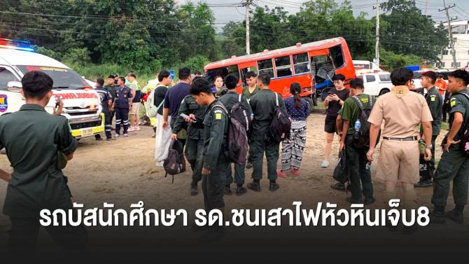 - รถบัสนักศึกษา รด.ชนเสาไฟหัวหินเจ็บ 8 30 ต.ค. 2568