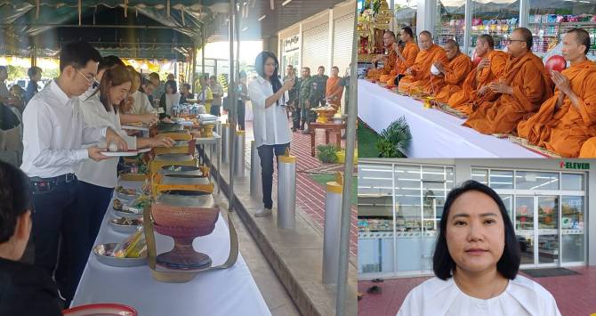 “วันนี้เราทำบุญเพื่อให้ผู้เสียชีวิตได้รับบุญกุศล และเพื่อให้ทุกคนในพื้นที่ได้มีกำลังใจ เราเปิดร้านเซเว่นฯ ใหม่อย่างเป็นทางการ ขยายพื้นที่และให้บริการเต็มรูปแบบทั้งปั๊มน้ำมัน ร้านกาแฟอเมซอน และร้านสะดวกซื้อ เพื่อให้สถานีแห่งนี้กลับมาเป็นศูนย์กลางบริการประชาชนเช่นเดิม” นางสาวกมลรัตน์กล่าว