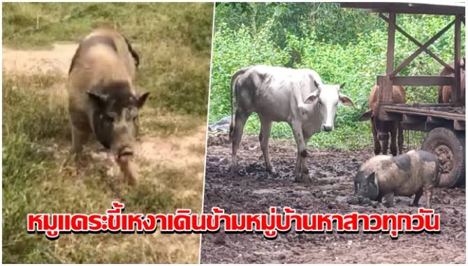แปลก! เจ้าโทนหมูแคระจอมซ่าขี้เหงา เดินข้ามหมู่บ้านหาสาว-ฝูงวัวบนถนน 2 กม.ทุกวัน