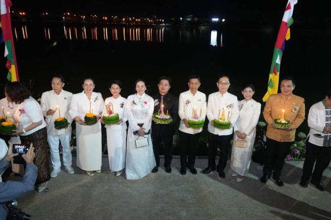 ทั้งนี้ งานจัดขึ้นระหว่างวันที่ 3–5 พฤศจิกายน 2568 ณ ริมบึงสีฐาน มหาวิทยาลัยขอนแก่น เพื่อเป็นพื้นที่แห่งศรัทธาและความภาคภูมิใจของชาวอีสานและประเทศเพื่อนบ้าน โดยสภาวัฒนธรรมจังหวัดขอนแก่นร่วมกับกรมส่งเสริมวัฒนธรรมและหน่วยงานต่าง ๆ จัดกิจกรรมสาธิตทำกระทง การแสดงศิลปวัฒนธรรม และขบวน “สายน้ำศรัทธา” ที่มีผู้ร่วมขบวนกว่า 100 คน สวมชุดขาวแสดงความจงรักภักดีและถวายความอาลัย