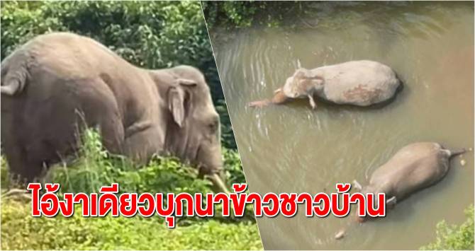 “ไอ้งาเดียว” ช้างป่าเขาอ่างฤาไน นำทีมบุกกินข้าวชาวบ้านกบินทร์บุรี