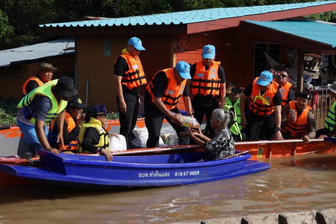 วันที่ 8 พฤศจิกายน 2568 ที่องค์การบริหารส่วนตำบลท่าดินแดง อำเภอผักไห่ จังหวัดพระนครศรีอยุธยา พล.ต.ท.วัฒนา ยี่จีน ผู้บัญชาการตำรวจภูธรภาค 1 พร้อมด้วยรองผู้บัญชาการตำรวจภูธรภาค 1 ลงพื้นที่มอบนโยบายแก่ข้าราชการตำรวจในพื้นที่ ภายหลังสถานการณ์น้ำท่วมในจังหวัดอยุธยาทวีความรุนแรงขึ้น พร้อมตรวจเยี่ยมและมอบสิ่งของบรรเทาทุกข์แก่ประชาชนที่ได้รับผลกระทบ