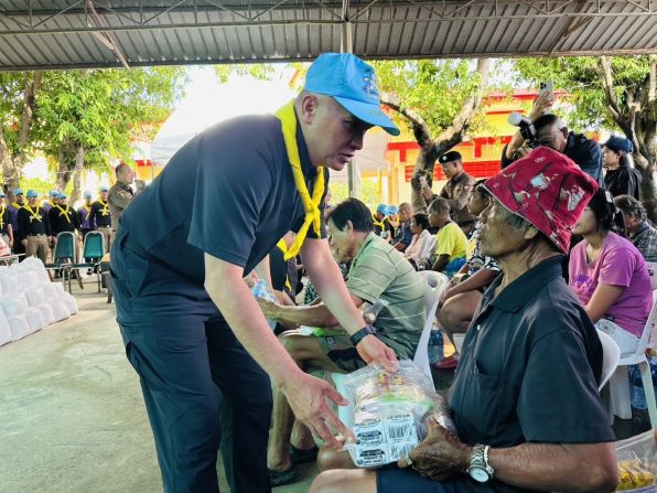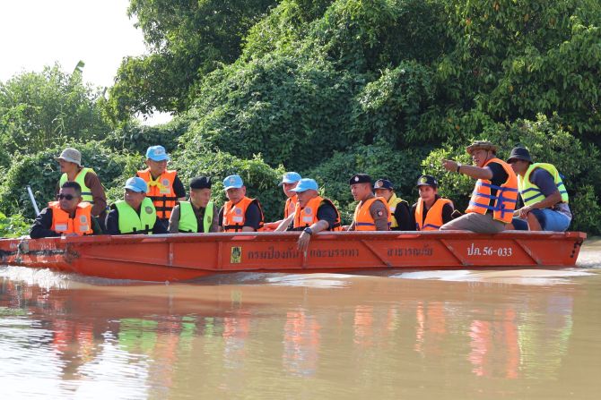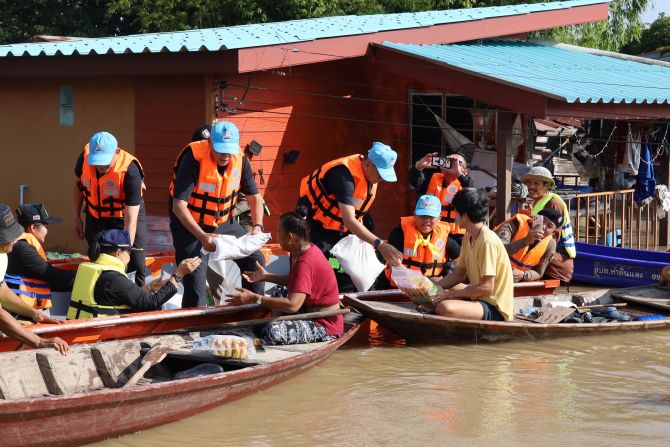 จากนั้น พล.ต.ท.วัฒนา พร้อมคณะ ได้ลงพื้นที่ตรวจเยี่ยมชาวบ้านในจุดน้ำท่วม โดยเฉพาะผู้สูงอายุและผู้ป่วยติดเตียงที่ไม่สามารถออกมารับสิ่งของได้ พร้อมมอบถุงยังชีพเพื่อบรรเทาความเดือดร้อน พบว่าหลายชุมชนมีระดับน้ำสูงกว่า 3-4 เมตร บ้านเรือนจำนวนมากถูกน้ำท่วมถึงพื้นบ้านและหน้าต่าง