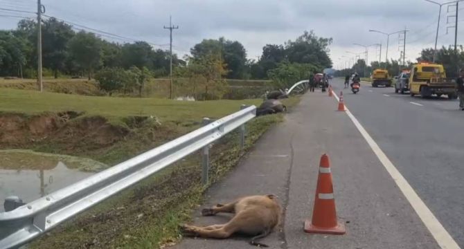 อุบัติเหตุสลด! รถชนควาย 7 ตัว ตาย 5 เจ็บ 2 ยังไม่พบเจ้าของ