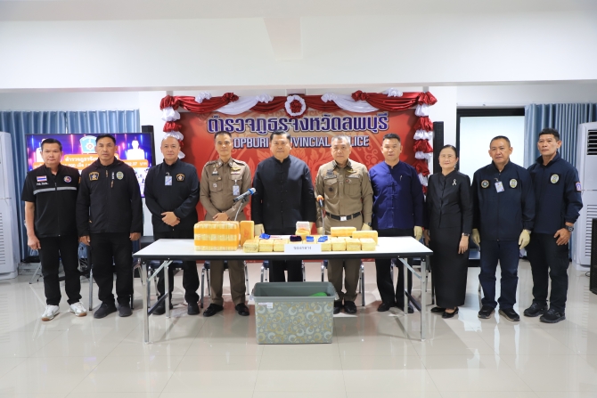 วันที่ 19 พฤศจิกายน 2568 ที่ตำรวจภูธรจังหวัดลพบุรี นายปรัชญา เปปะตัง รองผู้ว่าราชการจังหวัดลพบุรี รักษาราชการแทนผู้ว่าราชการจังหวัดลพบุรี พร้อมด้วย พล.ต.ต.ยรรยง สันติปรีชาวัฒน์ ผู้บังคับการตำรวจภูธรจังหวัดลพบุรี ร่วมบูรณาการกับหน่วยงานที่เกี่ยวข้อง แถลงผลการจับกุมนายสงคราม หรือ ตี๋ (สงวนนามสกุล) ชาวจังหวัดลพบุรี พร้อมของกลางยาบ้า 301,200 เม็ด มูลค่ากว่า 2 ล้านบาท