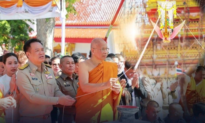 เมื่อเวลา 09.39 น. วันที่ 22 พฤศจิกายน 2568 นายอนุทิน ชาญวีรกูล นายกรัฐมนตรีและรัฐมนตรีว่าการกระทรวงมหาดไทย ลงพื้นที่วัดหนองแวง พระอารามหลวง อำเภอเมืองขอนแก่น เป็นประธานฝ่ายฆราวาสในพิธียกยอดฉัตรทองคำประดิษฐานเหนือพระมหาธาตุแก่นนครอนุสรณ์สาธุชน โดยมีสมเด็จพระมหาวีรวงศ์ กรรมการมหาเถรสมาคม และเลขานุการสมเด็จพระสังฆราช เป็นประธานฝ่ายสงฆ์ ประกอบพิธีเจิมและยกยอดฉัตรทองคำ ท่ามกลางพุทธศาสนิกชน รวมถึงหน่วยงานภาครัฐและเอกชนเข้าร่วมจำนวนมาก