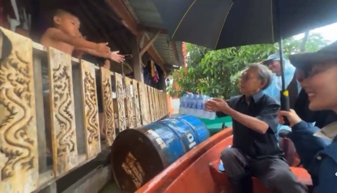 ชวน หลีกภัย ลงพื้นที่น้ำท่วมตรัง มอบสิ่งของช่วยเหลือประชาชน