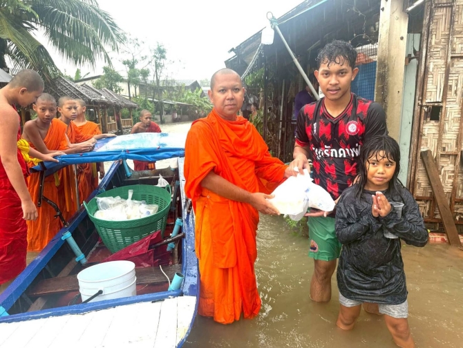 สถานการณ์น้ำท่วมรุนแรงในหลายจังหวัดของภาคใต้สร้างความเดือดร้อนแก่ประชาชนอย่างหนักใน 6 จังหวัด ได้แก่ สงขลา พัทลุง ปัตตานี ยะลา นราธิวาส และสตูล ส่งผลให้หลายพื้นที่ขาดแคลนทั้งที่พักพิงชั่วคราว อาหาร และน้ำดื่ม ในส่วนของพื้นที่ จังหวัดสตูล พระภิกษุสงฆ์และสามเณรจาก ศูนย์ปฏิบัติธรรมเมืองสตูล ได้ลงพื้นที่ให้ความช่วยเหลืออย่างต่อเนื่อง โดยจัด ข้าวกล่องและน้ำดื่มจำนวนกว่า 150 ชุด แจกจ่ายแก่ญาติโยมในเขตเมือง เพื่อบรรเทาความเดือดร้อนเบื้องต้น พร้อมให้กำลังใจแก่ผู้ที่ได้รับผลกระทบให้ร่วมกันก้าวผ่านวิกฤตครั้งนี้โดยเร็ว