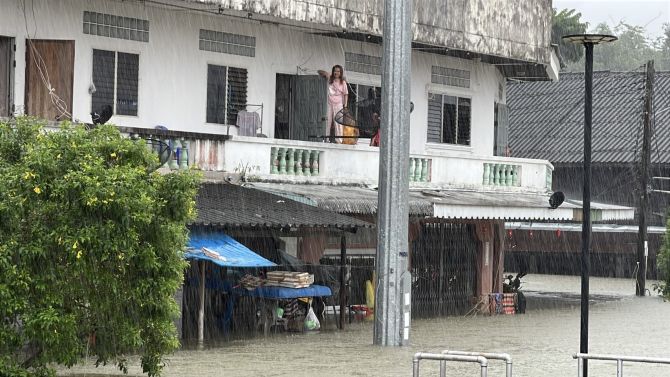 นายสมใจ แซ่อ๋อง ชาวบ้านในเขตเทศบาล ต.ย่านตาขาว ระบุว่า น้ำทะลักเข้าท่วมบ้านซ้ำซากเป็นครั้งที่ 2 ตั้งแต่ช่วงเมื่อคืนที่ผ่านมา มีความเชี่ยวรุนแรงมาก ชาวบ้านต้องอาศัยอยู่บนชั้น 2 เนื่องจากไม่สามารถออกจากบ้านได้ และเรือมีไม่เพียงพอในการช่วยเหลือ