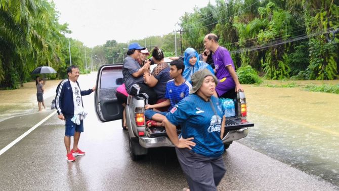 กู้ภัยตรังนำเรือท้องแบนช่วยผู้สูงอายุวัย 80 ติดในบ้านถูกน้ำล้อม 2 เมตร 21:37 น.- เหล่ากาชาดนครศรีฯ ลุยช่วยชาวปากนคร หลังน้ำท่วมฉับพลัน 19:54 น.