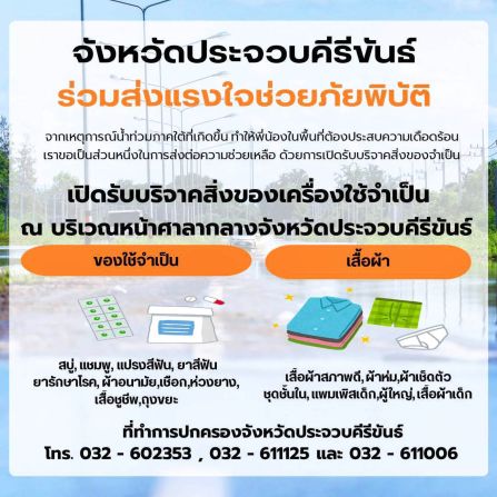 - ประจวบฯ ตั้งศูนย์ช่วยผู้ประสบอุทกภัยใต้ ส่งเจ้าหน้าที่กว่า 100 นายลงพื้นที่ 26 พ.ย. 2568
