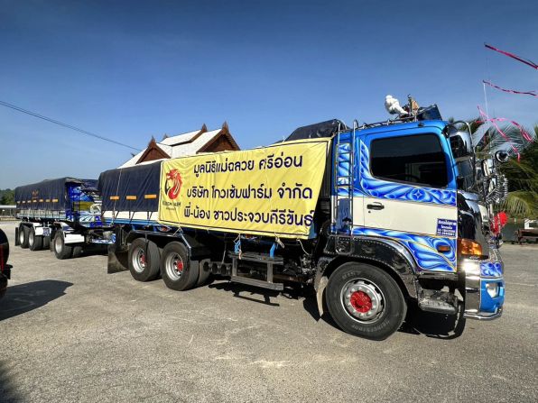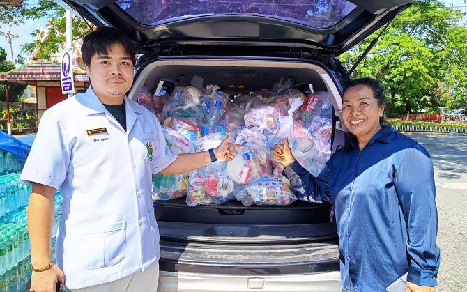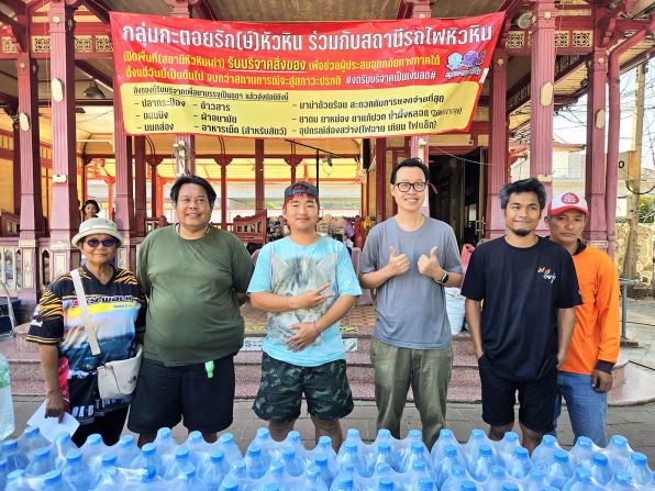 นายอนันทชัย หรือ “เบียร์” ประธานกลุ่ม “กะตอยรัก(ษ์)หัวหิน” กล่าวว่า ทางกลุ่มรับเฉพาะสิ่งของบริจาค ไม่รับเงินบริจาค โดยมีนักศึกษาจากวิทยาลัยการอาชีพวังไกลกังวลมาช่วยกันแพ็กเป็นถุงยังชีพ ซึ่งภายในประกอบด้วยข้าวสาร อาหารแห้ง ยารักษาโรค แพมเพิส ผ้าอนามัย อาหารสัตว์ นมผงเด็ก ยาสีฟัน น้ำยาบ้วนปาก และอาหารสำเร็จรูปต่าง ๆ เพื่อให้สามารถนำไปใช้งานได้ทันทีโดยไม่ต้องคัดแยกที่ปลายทาง โดยเมื่อวานนี้ มูลนิธิเพชรเกษมหัวหินนำรถบรรทุกขนาดใหญ่ “เจ้ายักษ์แดง” มารับน้ำดื่มและถุงยังชีพจำนวนประมาณ 500–600 แพ็กไปแล้ว และวันนี้ยังมารับเพิ่มอีกกว่า 600 ชุด