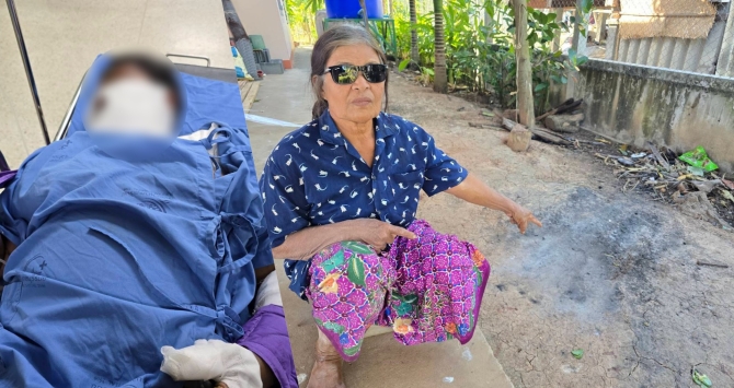ด้าน นางทองคำ อายุ 70 ปี แม่ผู้บาดเจ็บ กล่าวว่า ก่อนเกิดเหตุลูกสาวบ่นว่าหนาว จึงก่อไฟให้อบอุ่นและนั่งเป็นเพื่อนอยู่ระยะหนึ่ง ก่อนแยกตัวไปทำบุญใส่บาตร โชคดีที่ลูกสาวอีกคนมาเห็นทัน ไม่เช่นนั้นอาจเสียชีวิตได้