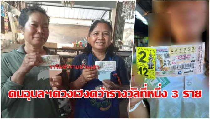 คนอุบลฯดวงเฮง! ถูกทั้งลอตเตอรี่พลัส รับ 30 ล้าน-รางวัลที่หนึ่ง 3 ราย เกือบ 50 ล้าน