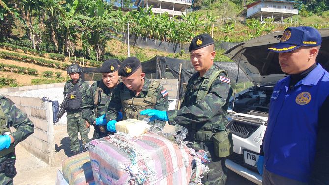เวลา 10.00 น. วันที่ 3 ธันวาคม 2568 พลตรี สาธิต ไวยนนท์ ผู้บัญชาการกองกำลังผาเมือง มอบหมายให้ พันเอก สุพรรณ ร้อยพุทธ ผู้บังคับหน่วยเฉพาะกิจทัพเจ้าตาก กองกำลังผาเมือง พร้อมหน่วยเฉพาะกิจกรมทหารพรานที่ 31 ฝ่ายปกครอง ตำรวจ สภ.แม่ฟ้าหลวง ตชด.327 และหน่วยที่เกี่ยวข้อง ร่วมตรวจสอบยาเสพติดภายหลังเกิดเหตุปะทะระหว่างเจ้าหน้าที่กับกลุ่มลำเลียงยาเสพติดในพื้นที่ อำเภอแม่ฟ้าหลวง จังหวัดเชียงราย โดยเหตุปะทะเกิดขึ้น 2 ครั้งในคืนเดียว สามารถยึดยาบ้ารวมประมาณ 3,100,000 เม็ด
