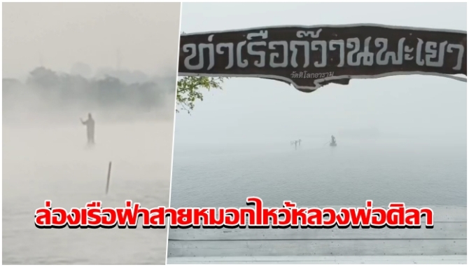 หมอกท่วมเมือง! นักท่องเที่ยวแห่ล่องเรือฝ่าสายหมอกไหว้ หลวงพ่อศิลาวัดกลางน้ำสุดขลัง