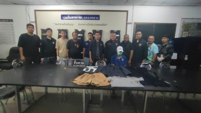 เมื่อเวลา 21.00 น. วันที่ 8 ธ.ค. 68 เจ้าหน้าที่ตำรวจ สภ.คลองหลวง สามารถจับกุมผู้ต้องหาได้ที่สนามธูปะเตมีย์ อำเภอลำลูกกา จังหวัดปทุมธานี โดยผู้ต้องหาคือ นายวัชพล อายุ 21 ปี ชาวจังหวัดพระนครศรีอยุธยา ซึ่งเป็นลูกจ้างหน่วยงานทางทหาร พร้อมของกลางมีดปลายแหลม เสื้อผ้าที่สวมใส่ในวันเกิดเหตุ โทรศัพท์มือถือ ถุงมือ และรถจักรยานยนต์ที่คาดว่าเป็นของผู้เสียชีวิต