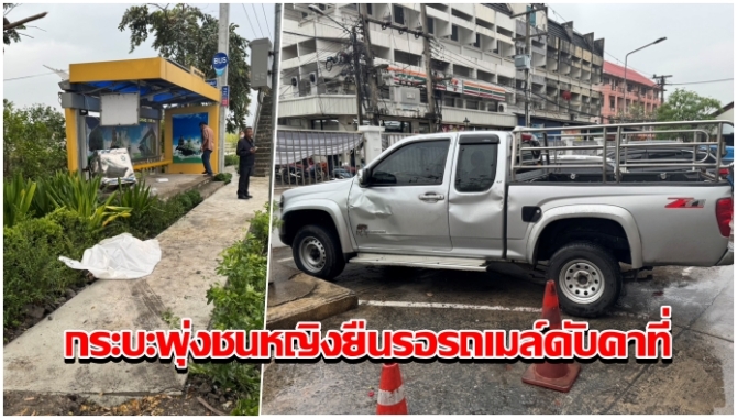 กระบะเสียหลักหมุนพุ่งชนหญิงยืนรอรถเมล์ในศาลาผู้โดยสารเสียชีวิตคาที่