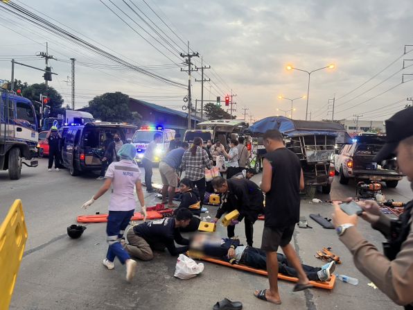 ด้านคนขับรถกระบะรับส่งคนงานชื่อแกละ ชาวจังหวัดสุพรรณบุรี ระบุว่า ขณะขับรถรับส่งคนงานมุ่งหน้าไปยังโรงงานแห่งหนึ่งในจังหวัดใกล้เคียง ระหว่างจอดรอสัญญาณไฟแดง ได้ถูกรถบรรทุกพ่วงพุ่งชนท้ายอย่างรุนแรง ทำให้คนงานที่โดยสารมาด้านหลังบางส่วนกระเด็นออกจากตัวรถและได้รับบาดเจ็บ
