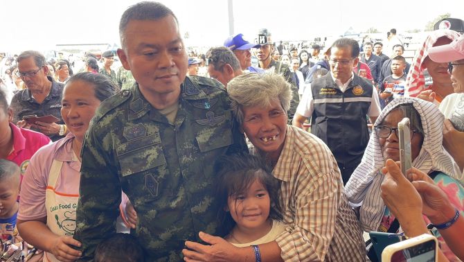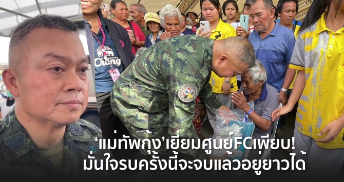 โดยหลังจากผู้อพยพทราบและเห็นต่างแตกตื่นวิ่งออกมาต้อนรับพร้อมขอถ่ายภาพร่วมกับแม่ทัพกุ้งกันอย่างคึกคัก เรียกได้ว่าผู้อพยพหลายคนลืมความทุกข์ที่ต้องหนีภัยสงครามไปในทันทีระหว่างที่พบปะกับแม่ทัพกุ้ง ที่พูดคุยกับชาวบ้านด้วยความเป็นกันเอง