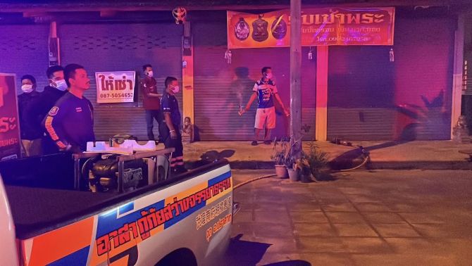 สถานที่เกิดเหตุเป็นร้านขายเช่าพระเครื่อง ลักษณะเป็นห้องแถว โดยด้านหน้าร้านถูกล็อกกุญแจจากภายนอก เจ้าหน้าที่ต้องใช้อุปกรณ์ตัดถ่างเปิดประตูเข้าไปตรวจสอบ ภายในพบกลิ่นเหม็นคลุ้ง ก่อนพบร่างผู้เสียชีวิตนอนคว่ำหน้าอยู่ภายในห้อง สภาพเริ่มอืด คาดว่าเสียชีวิตมาแล้วประมาณ 4–5 วัน