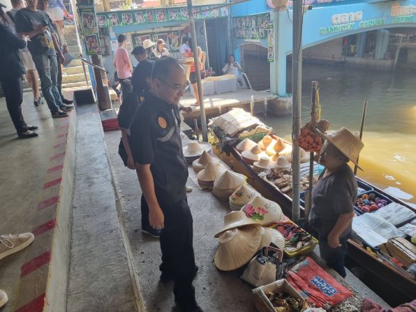 นายธรณีนทร์ บรรยงวรพินิจ พาณิชย์จังหวัดราชบุรี พร้อมด้วยนางสาวรุ่งฤทัย เกิดแจ้ง นักวิชาการพาณิชย์ชำนาญการพิเศษ เจ้าหน้าที่สำนักงานพาณิชย์จังหวัดราชบุรี สำนักงานการท่องเที่ยวและกีฬาจังหวัดราชบุรี กองอำนวยการรักษาความมั่นคงภายในจังหวัดราชบุรี (กอ.รมน.) และหน่วยงานที่เกี่ยวข้อง ร่วมตรวจร้านค้าและผู้ประกอบการในพื้นที่ตลาดน้ำดำเนินสะดวก เพื่อกำชับให้ปฏิบัติตามกฎหมายตามพระราชบัญญัติว่าด้วยราคาสินค้าและบริการ พ.ศ. 2542