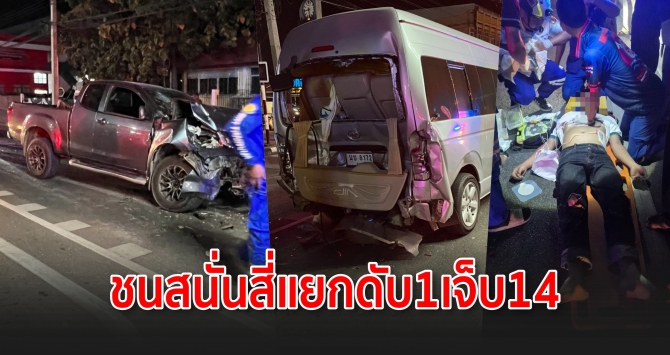 ชนสนั่นสี่แยกท่าเรือ รถ 3 คันพังยับ ดับ 1 เจ็บ 14