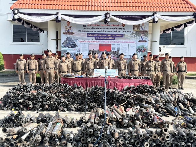 เมื่อวันที่ 29 ธ.ค.68 ที่อาคารที่ทำการ ภ.จว.ประจวบคีรีขันธ์ อ.เมืองประจวบฯ พล.ต.ต.อาทร ชิ้นทอง ผบก.ภ.จว.ประจวบฯ พร้อมด้วย พ.ต.อ.เฉลิมวุฒิ วงเวียงจันทร์ พ.ต.อ.สมชาย ชูแก้ว รอง ผบก.ภ.จว.ประจวบฯ และตัวแทนจาก 16 สภ.ในสังกัดตำรวจภูธรจังหวัดประจวบฯ ร่วมแถลงข่าวผลการปฏิบัติงาน ปราบจริง ยึดจริง ปรับจริง ตามมาตรการป้องกันปราบปรามรถแต่งซิ่ง รถท่อดัง รถดัดแปลงสภาพ และรถแข่งบนถนน “หยุดแว้น หยุดเสียงดัง ประจวบคีรีขันธ์ เมืองท่องเที่ยว ประชาชนปลอดภัย” สร้างความสงบเรียบร้อย แก้ปัญหาเรื่องเดือดร้อนรำคาญให้กับประชาชน